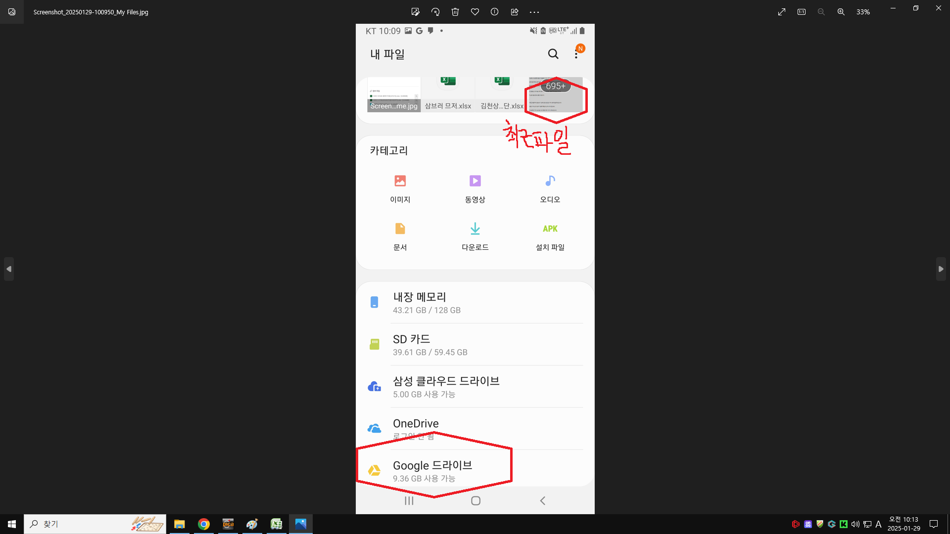 4. 최근파일 영역이나 Google드라이버 영역에서 파일을 발견하여 열어 봅니다.