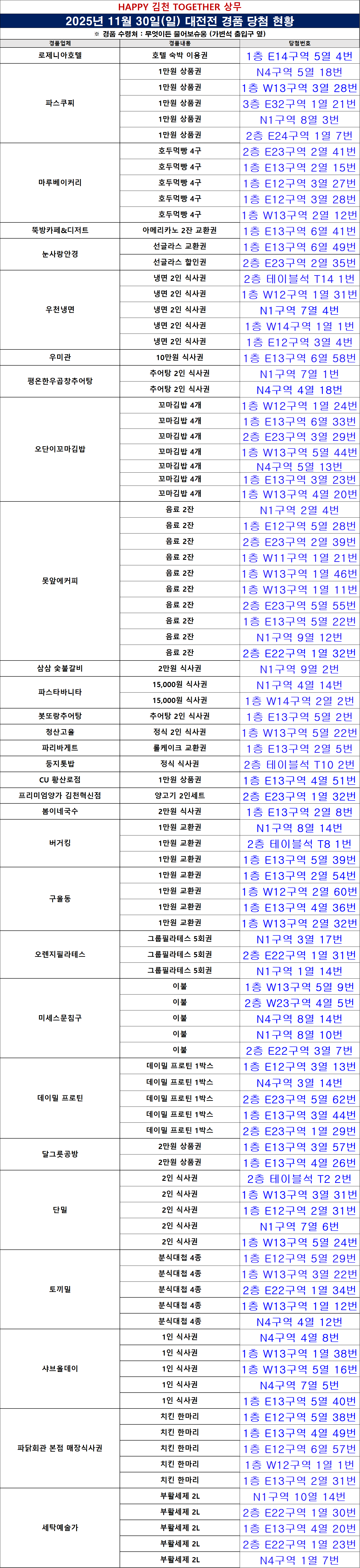 경품 수령처 : 경기 당일 무엇이든 물어보슈웅(가변석 게이트 옆) / 평일 김천상무프로축구단 사무국