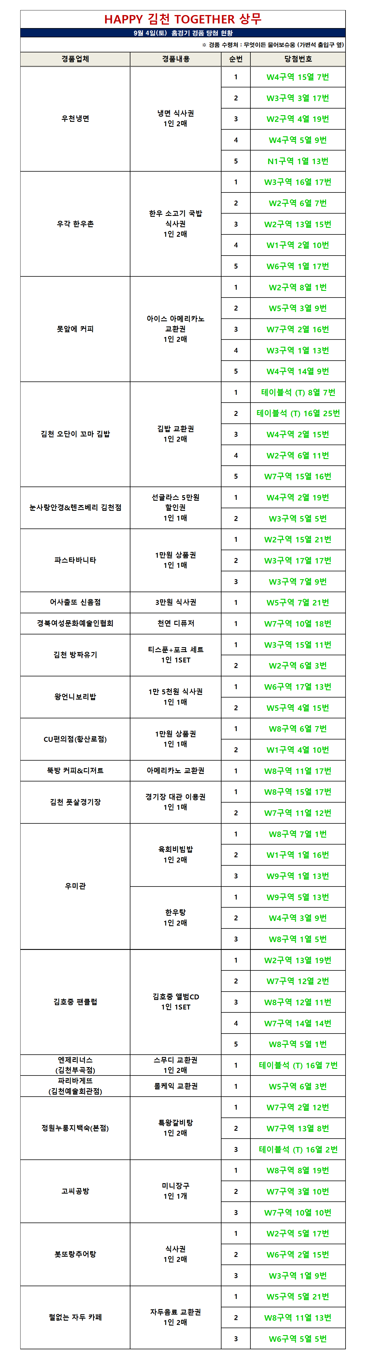 2021년 9월 4일 (토) vs 서울E 경품당첨