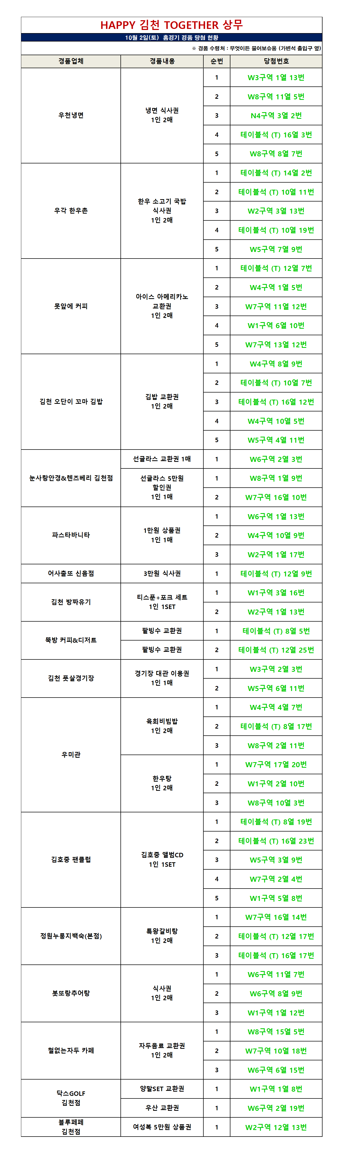 2021년 10월 2일 (토) vs 안산 경품당첨