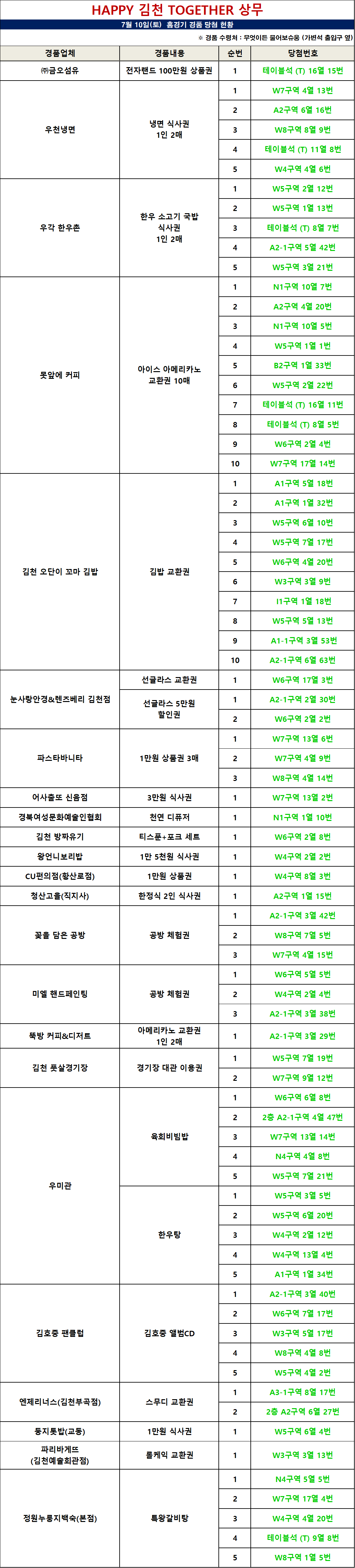 경품 수령기한 : 7월 10일(토) ~ 7월 13일(화) 18:00 구단 사무국