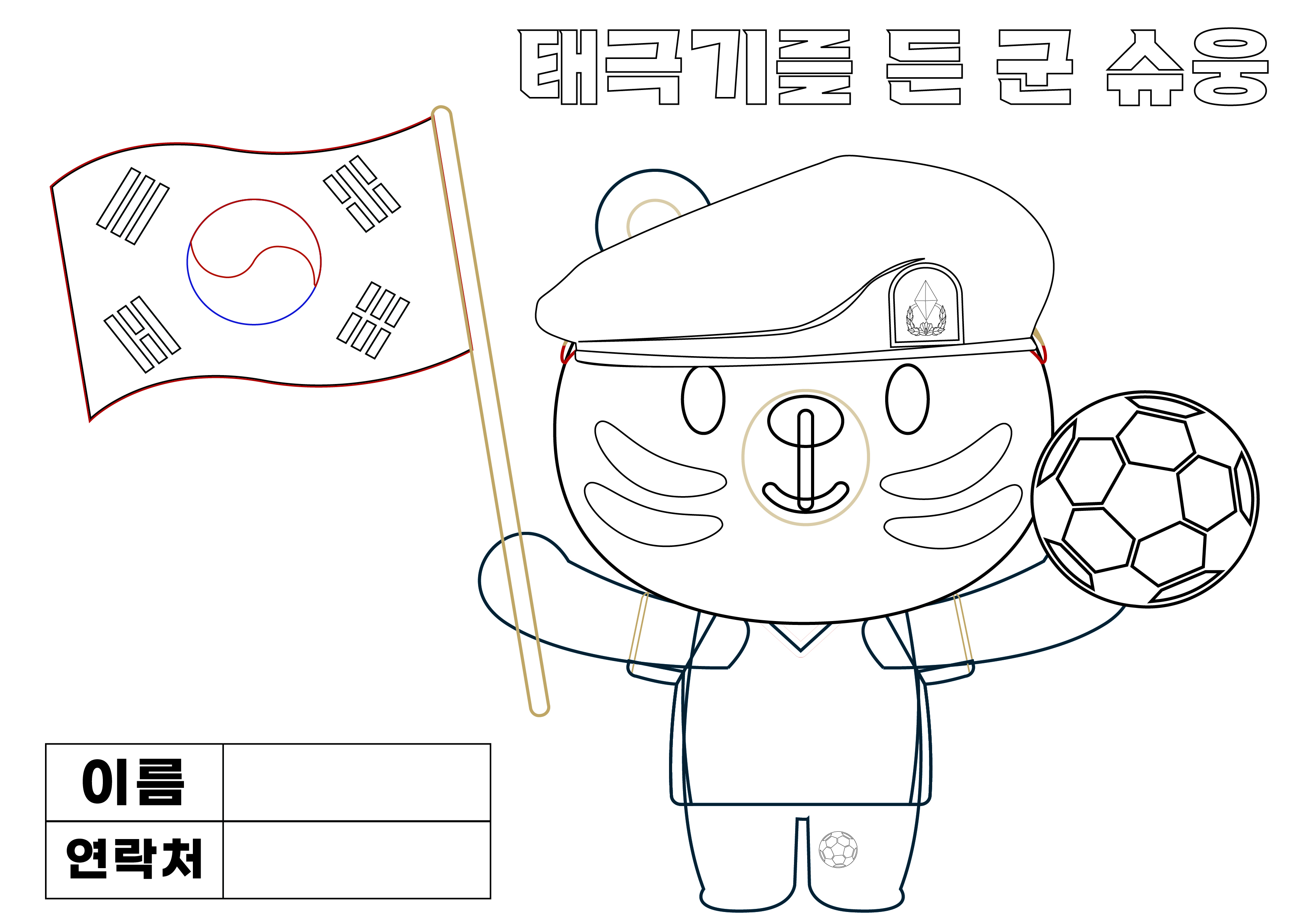 - 태극기를 든 군 슈웅 만들기 종이 인쇄, 색칠한 후 6월 10일 홈경기 시 장외부스에 제출