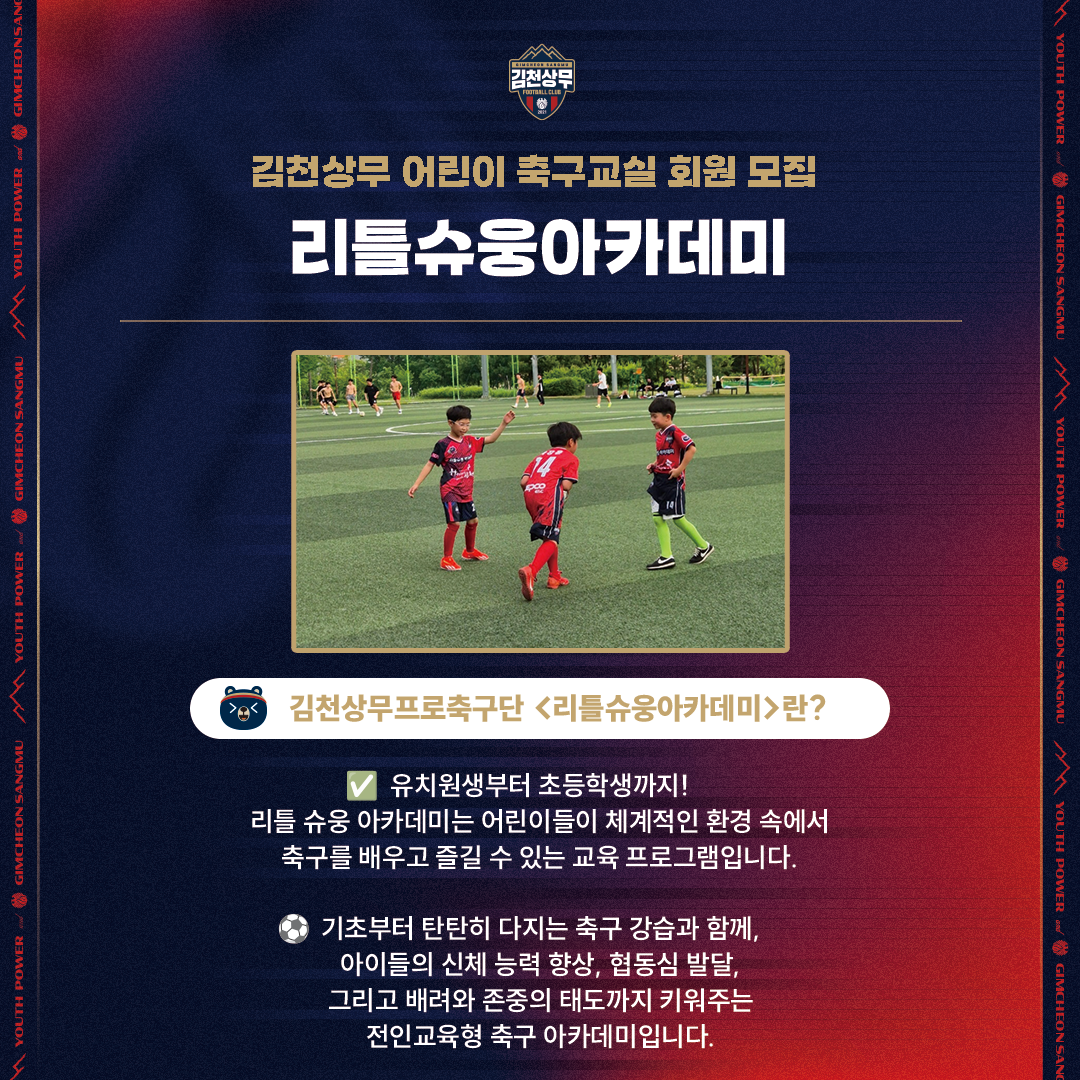 [2025년 김천상무 어린이 축구교실 한국전력기술 x ‘리틀슈웅 아카데미’ 회원 상시 모집]