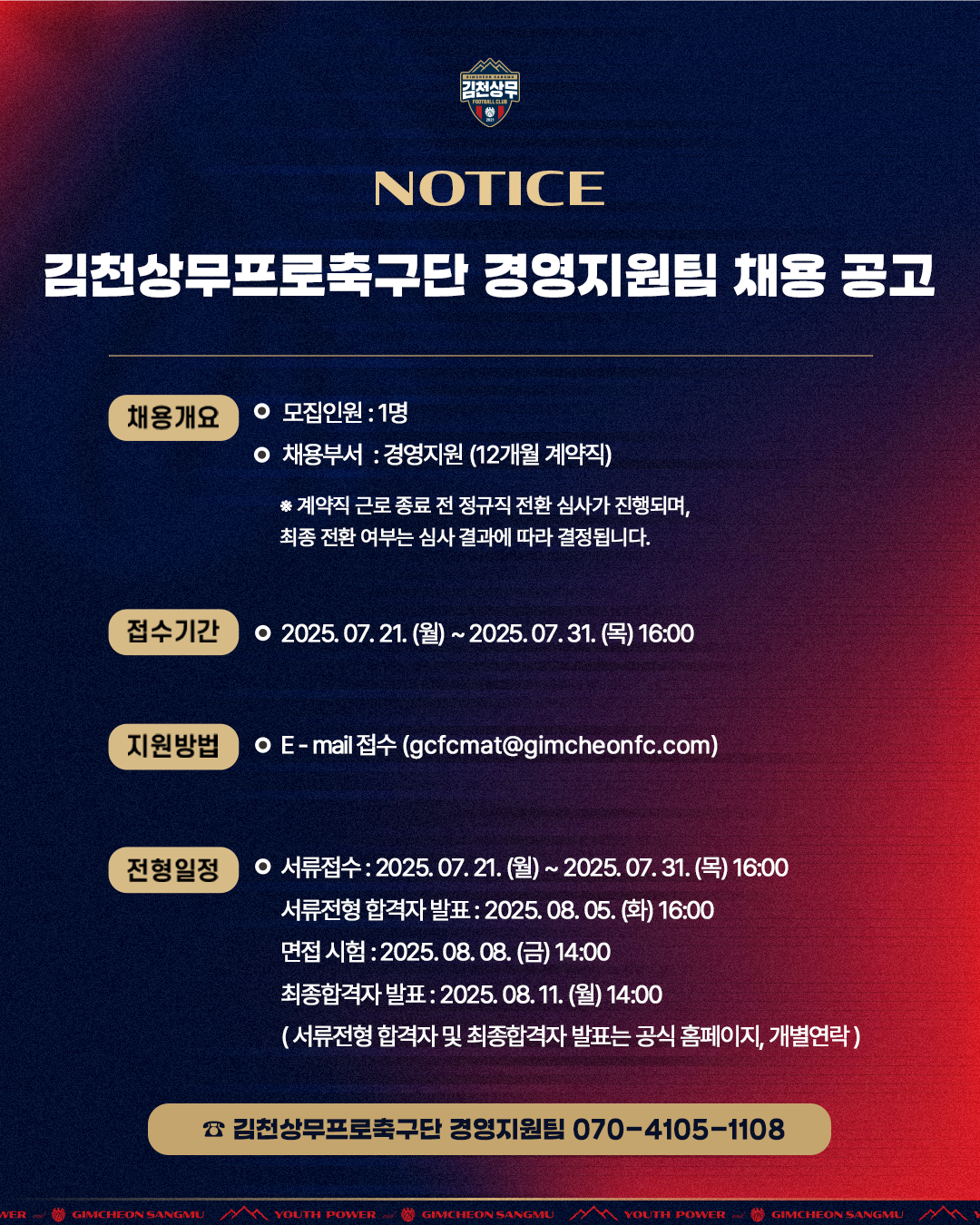 김천상무프로축구단에서 직원을 공개 모집합니다.