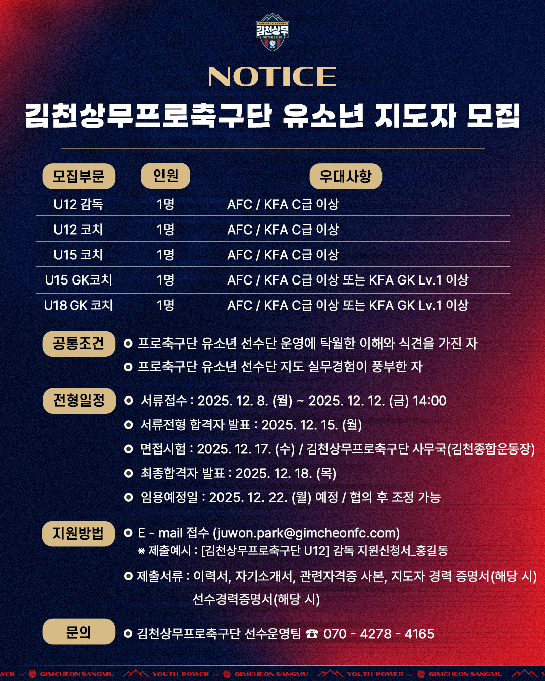 * 면접시험: 2025년 12월 17일(수) / 김천상무프로축구단 사무국(김천종합운동장)