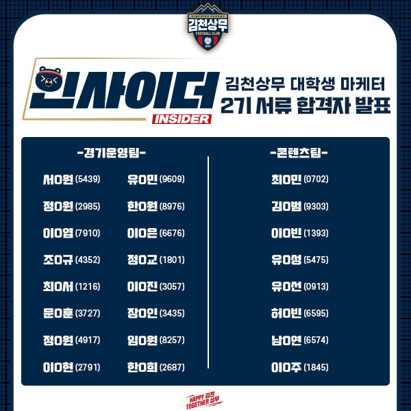 #천상무프로축구단 #김천상무FC #김천상무 #대학생마케터 #인사이더 #서류합격자발표