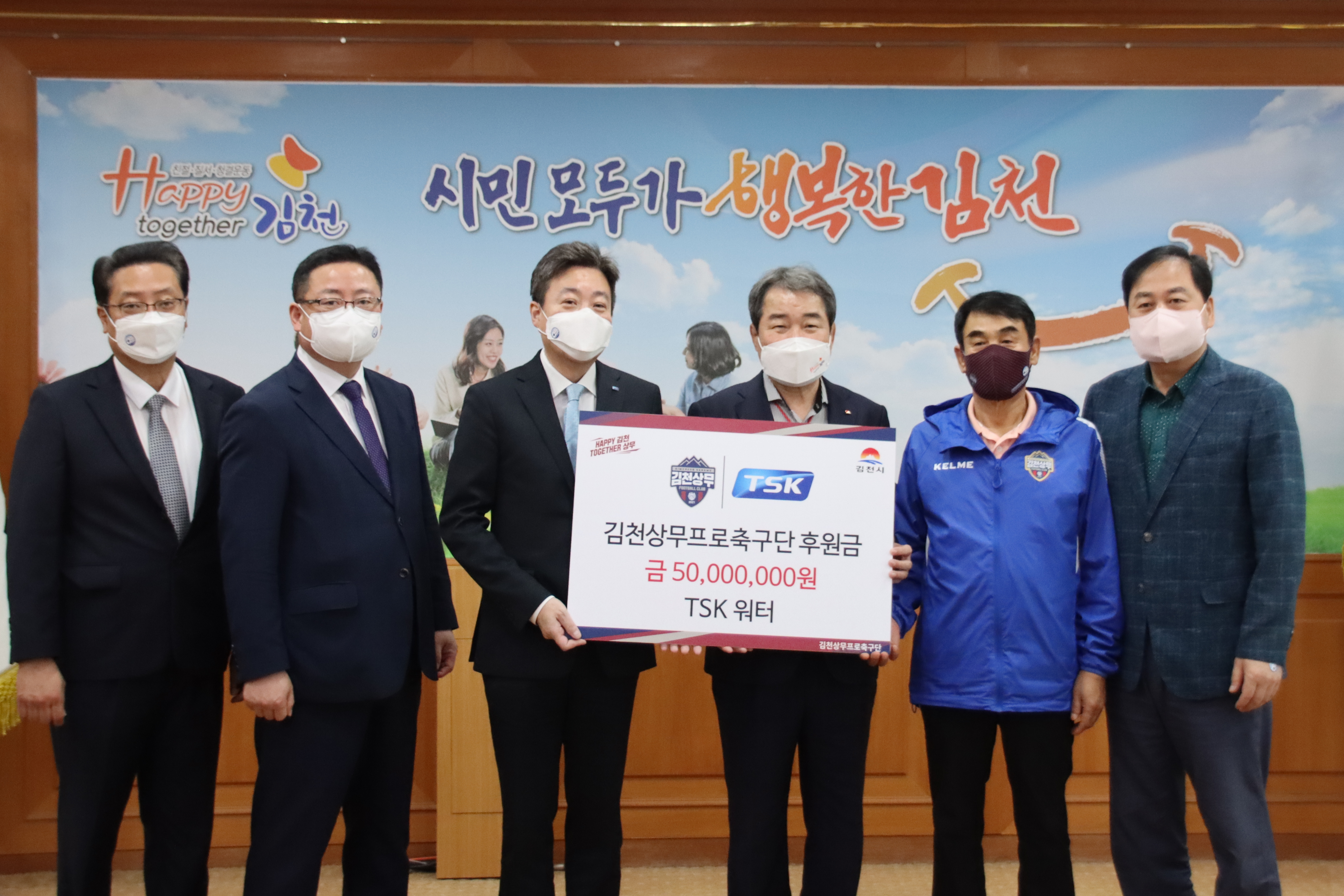TSK 워터는 지역 내 스포츠 발전을 위해 김천상무에도 5천만원의 후원금을 전달했다. TSK 워터 김인석 대표이사는 “김천시가 더욱 발전하고 프로축구단이 정착하는 데에 TSK가 도움이 되었으면 한다. 지역 내 프로축구단의 신설은 상당히 환영받고 축하받을 일이다. 지역 내에 안정적으로 정착하고 지역민들과 상생해 시너지 효과를 냈으면 한다”고 전했다.