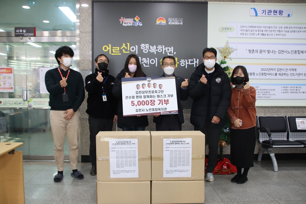 마스크를 전달 받은 김천시 노인종합복지관 김민종 관장은 “축구단이 지역과 함께한다는 사실이 정말 좋은 것 같고 좋은 취지로 마스크를 기부해주셔서 정말 감사하다. 2022년에 유용하게 잘 사용하겠다. 어르신들에게 큰 도움이 될 것 같다”고 말했다.