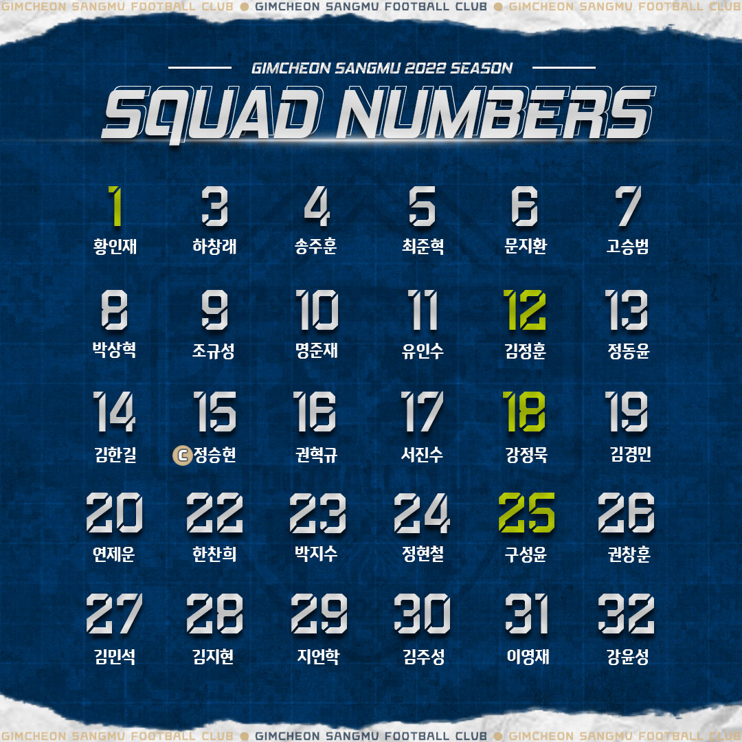 2022년을 이끌 김천상무 선수단의 배번이 공개됐다.