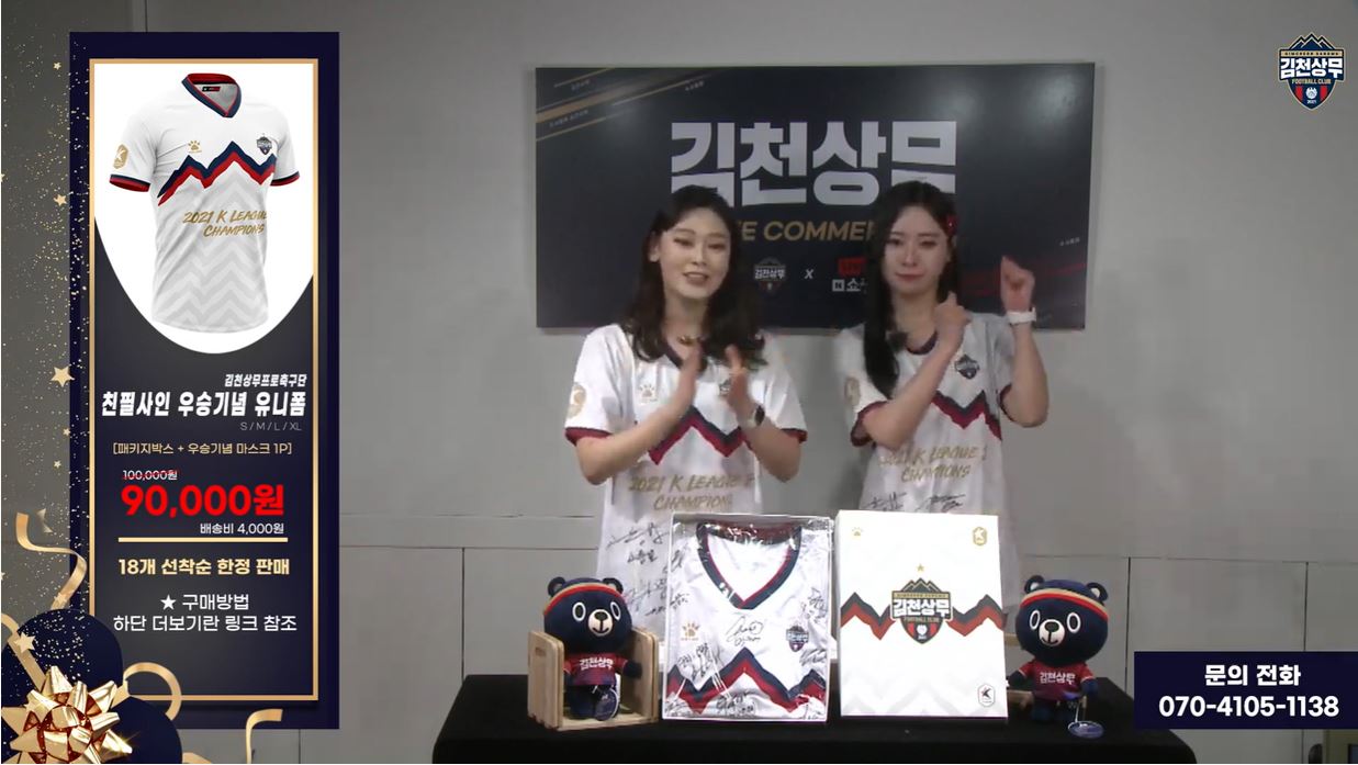 김천상무로 4행시를 짓고 두 명의 당첨자에게 구매권을 주는 방식으로 총 20벌의 선수단 친필사인 유니폼을 팔았고 김천상무의 첫 라이브 커머스는 성황리에 종료됐다. 20여 분의 짧은 진행 시간 동안 790여 명의 시청자들이 접속하며 뜨거운 관심을 증명했다.