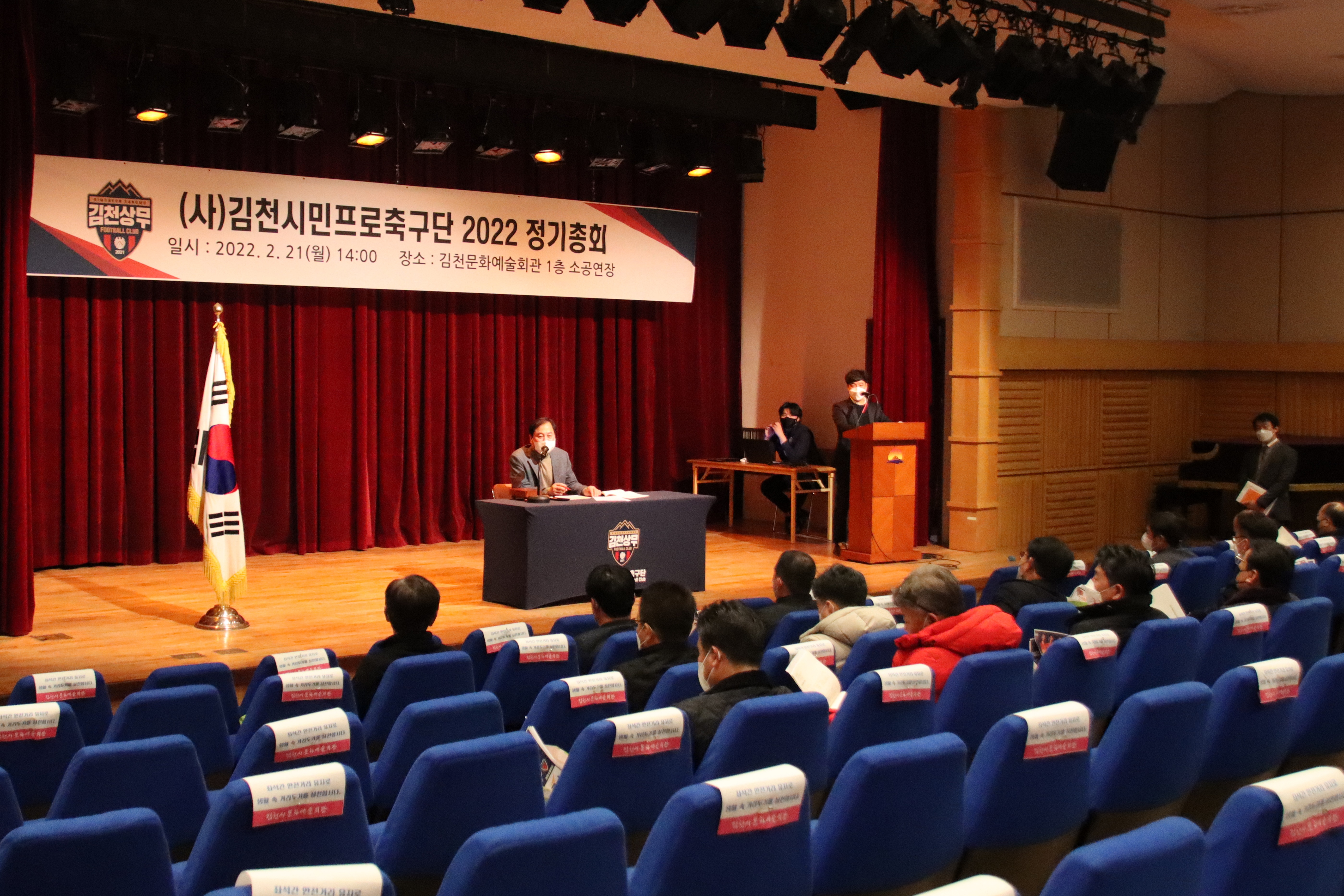 김천상무프로축구단이 21일 오후 2시, 김천문화예술회관 소공연장에서 ‘김천시민프로축구단 2022년 제1차 정기총회’를 개최했다. 정기총회에는 김천상무 김충섭 구단주, 배낙호 대표이사, 최한동 후원회장을 비롯해 대의원 20명이 참석했다.