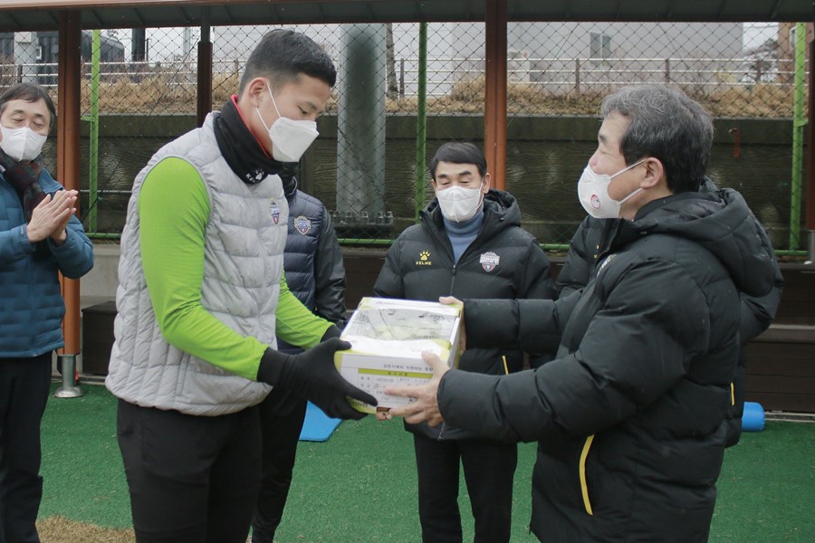 김태완 감독은 “어려운 시국 속에서 시장님께서 직접 격려 방문까지 와주셔서 정말 감사하다. 동계훈련을 통해 전술, 조직력을 잘 갖춰 개막 후 팬분들의 눈을 즐겁게 하는 축구를 하겠다. 김천상무에 대한 많은 관심 부탁드린다”고 말했다.