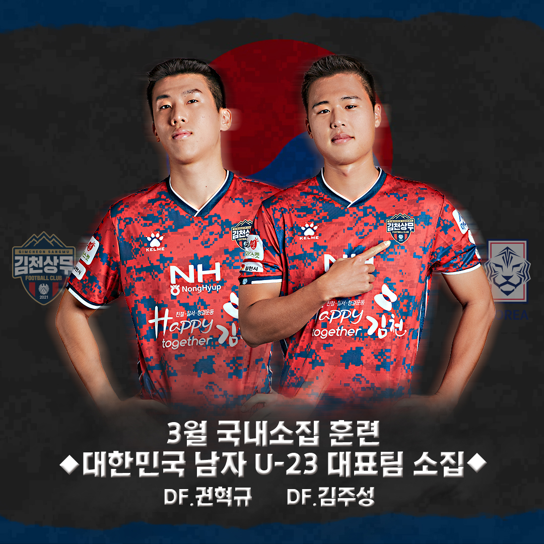 15일 대한축구협회는 오는 21일부터 29일까지 강릉에서 실시하는 U-23 대표팀 훈련에 참가할 26명 명단을 발표했다. 김천상무에서는 권혁규, 김주성이 이름을 올렸다.
