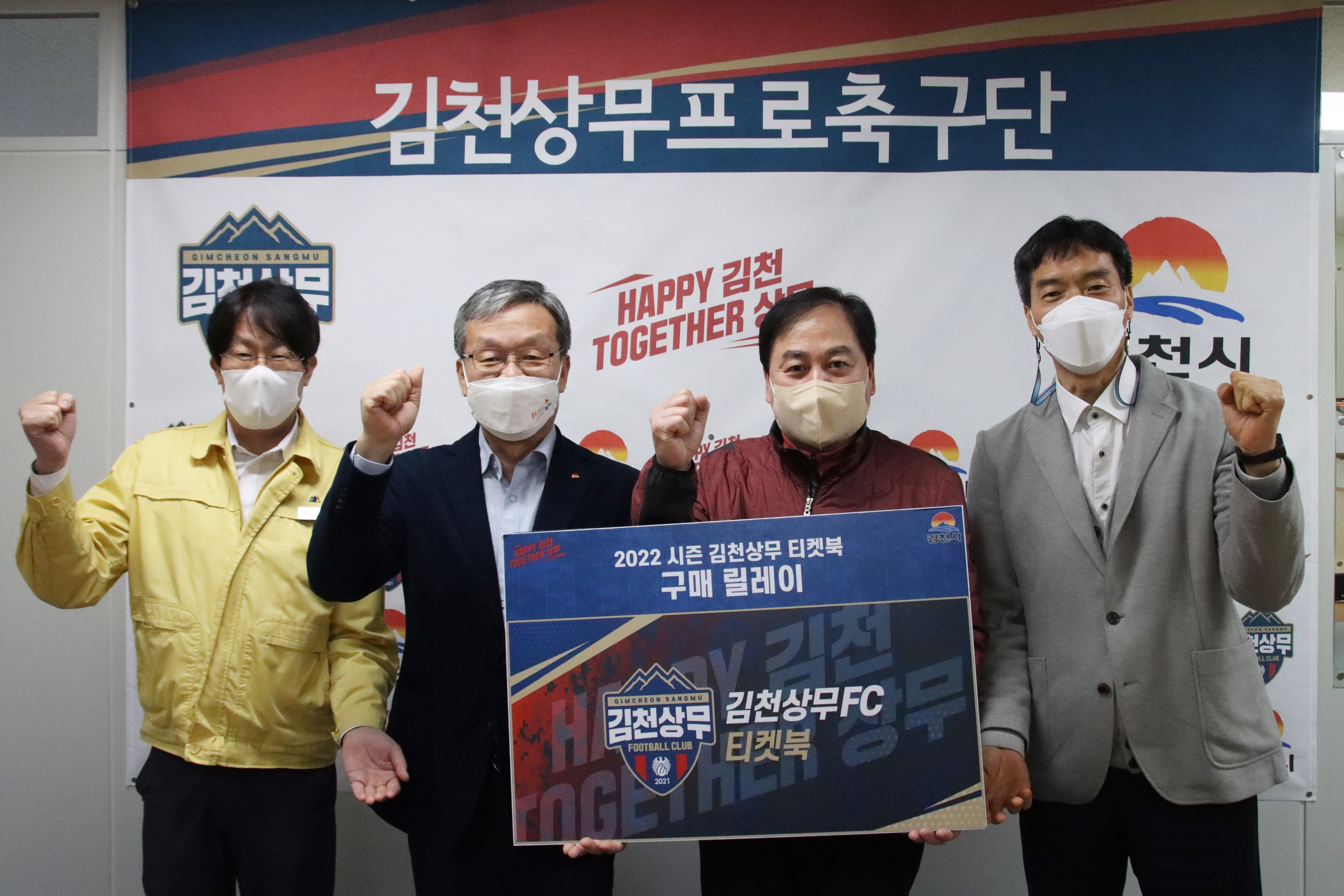 김천상무프로축구단이 17일 대표이사실에서 김천시 청렴감사실의 티켓북 구매 릴레이를 행사를 실시했다. 청렴감사실은 2권의 티켓북을 구매했다. 행사에는 이삼근 청렴감사실장과 청렴감사실 소속 팀장, 배낙호 김천상무 대표이사가 참석했다.
