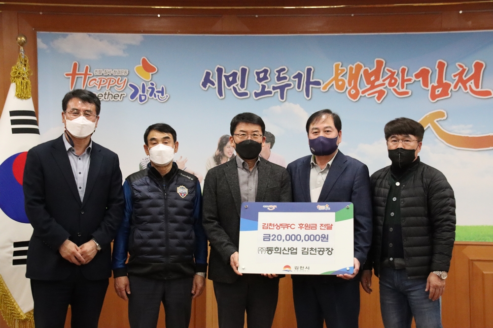 박주은 ㈜동희산업 대표는 “김천시 연고 프로축구단인 김천상무에 후원금을 전달하게 돼 기쁘다. 어려운 시기를 김천상무를 통해 지역민들과 함께 극복하고 한발 더 나아갈 수 있었으면 한다. 앞으로도 구단에 대한 많은 관심과 격려를 이어나가겠다”고 말했다.