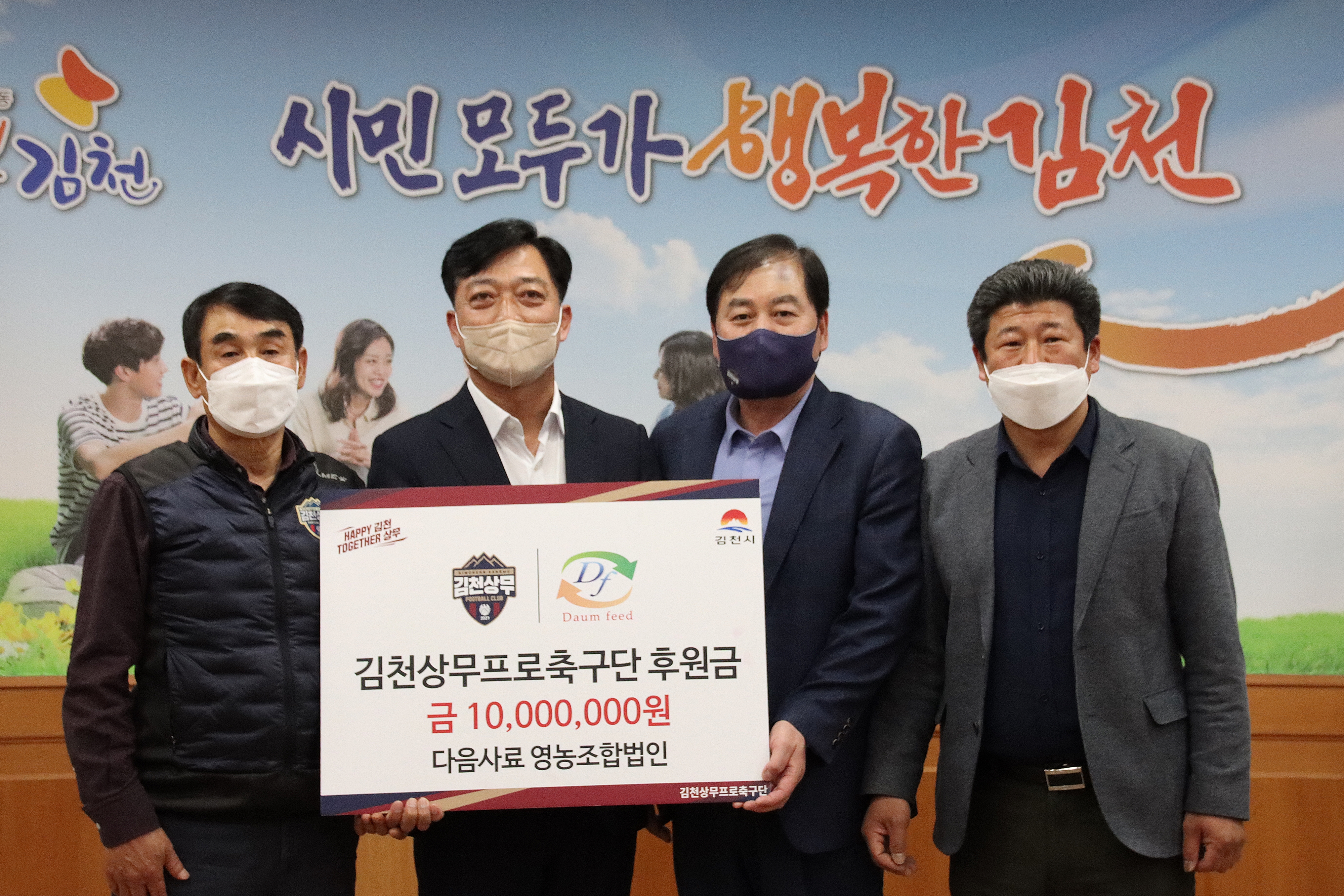 김천상무프로축구단이 1일 오후, 김천시청 2층 접견실에서 김천상무의 후원금 전달식을 진행했다. 다음사료 영농조합법인은 김천상무에 1천만원의 후원금을 전달했다. 전달식에는 이수형 다음사료 영농조합법인 대표, 배낙호 김천상무 대표이사, 최한동 후원회장, 이흥실 단장이 참석했다.
