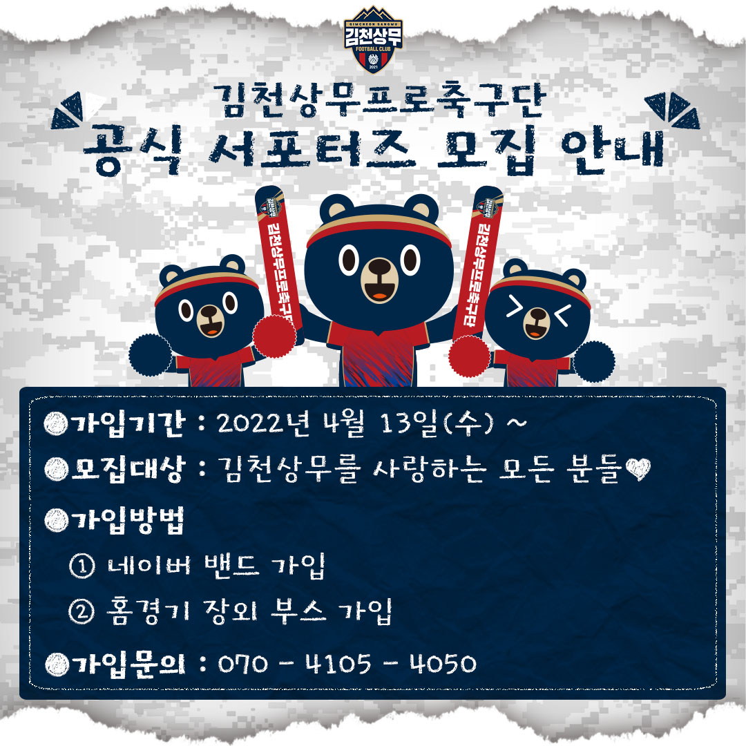 한편, 서포터즈 관련 문의는 김천상무 마케팅 팀 유선 전화(070-4105-4050)를 통해 할 수 있다.
