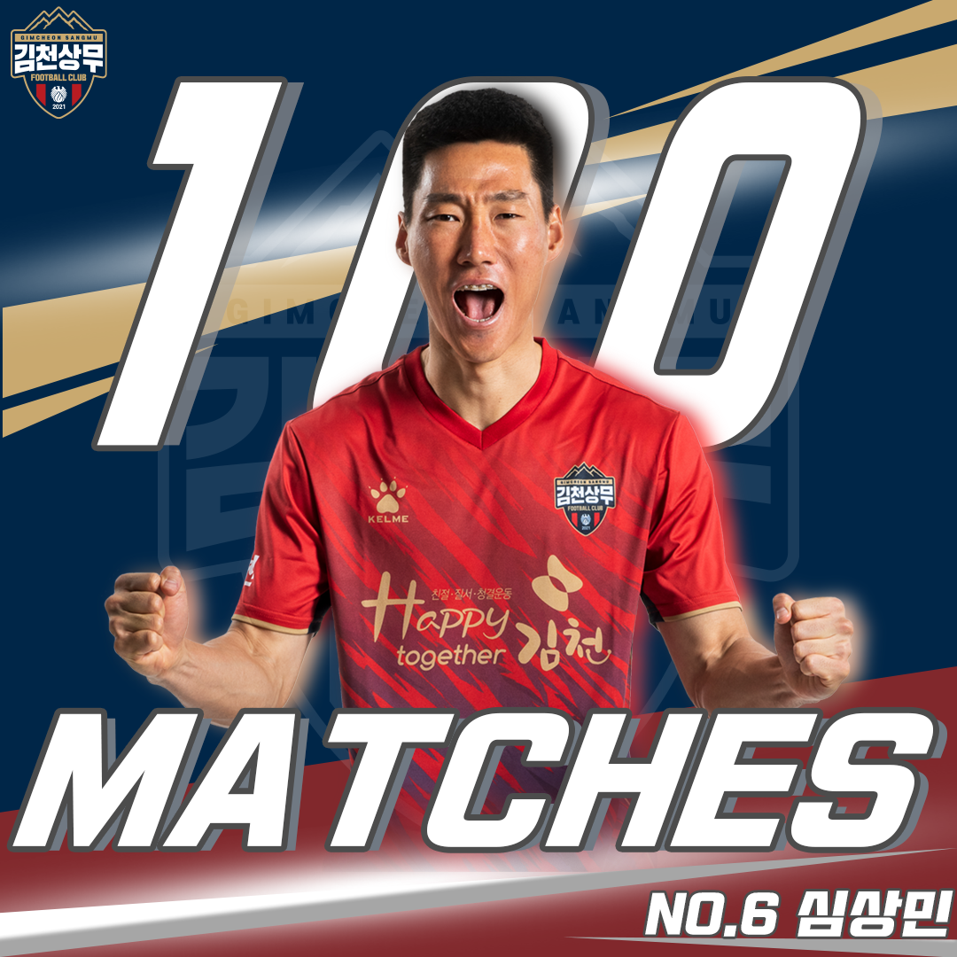 김천상무프로축구단(대표이사 배낙호)은 지난달 27일(토) 안산 와~스타디움에서 열린 ‘하나원큐 K리그2 2021’ 1R 원정 경기서 1대 1로 무승부를 거뒀다. 이날 경기서 주장 심상민은 자신의 프로통산 100경기를 달성했다.