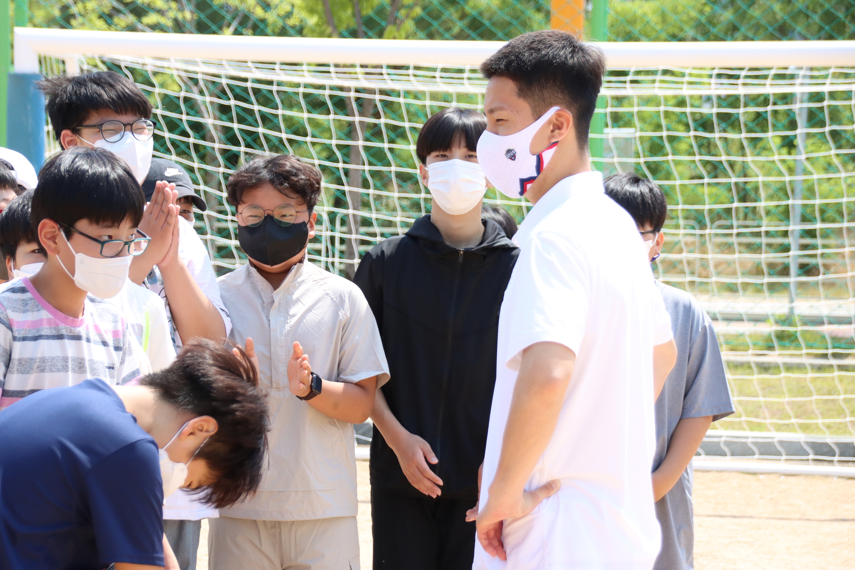 김천상무 고승범은 “여학생들도 축구를 잘 따라하고 잘하는 학생들도 많았다. 아이들이 대체로 축구를 좋아하는 것 같아서 감동을 받았다. 특히, 모드리치 유니폼을 입은 아이도 있어서 감명 깊었다”고 전했다.