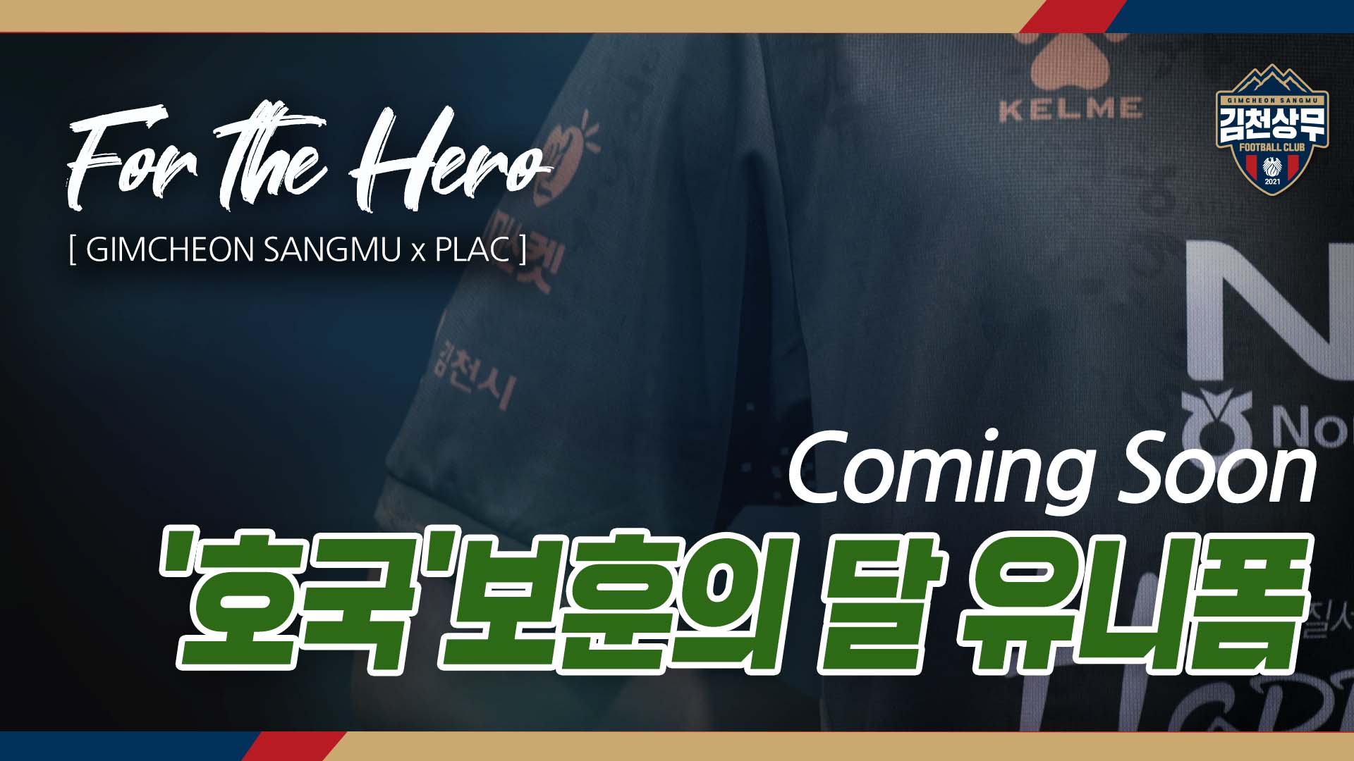김천상무프로축구단(대표이사 배낙호)이 6일, 구단 공식 SNS를 통해 호국보훈 헌정 유니폼 티저 영상을 발표했다. 호국보훈 헌정 유니폼은 6월 호국보훈의 달을 기념하고 국가를 위해 헌신한 호국영웅들을 기리기 위해 특별 제작되었다.
