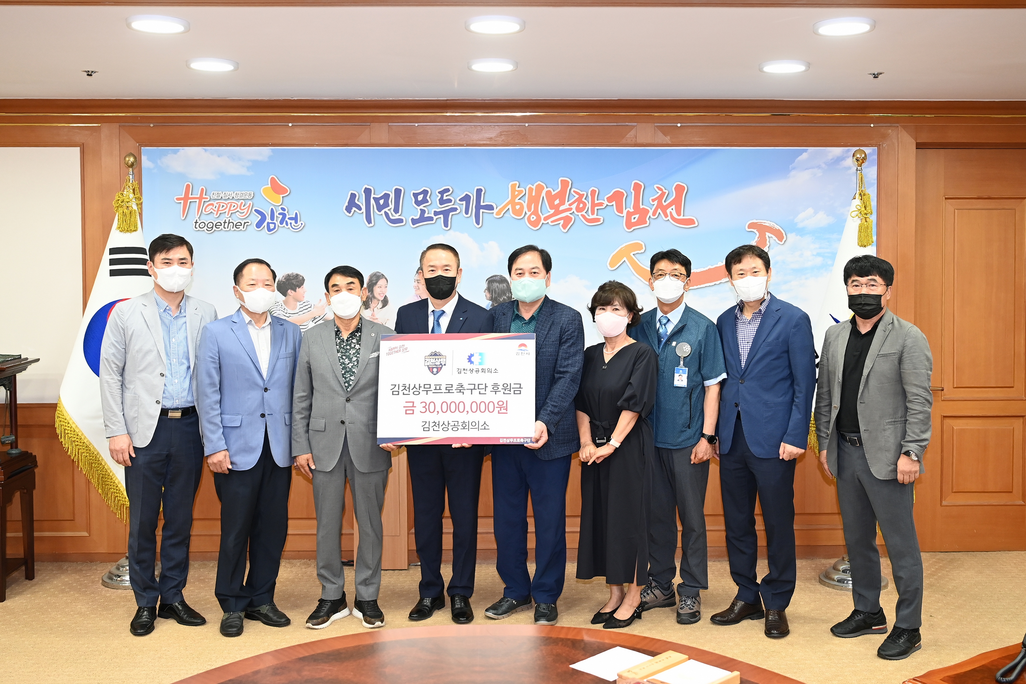 김천상공회의소가 김천상무프로축구단에 후원금 3천만원을 전달했다.