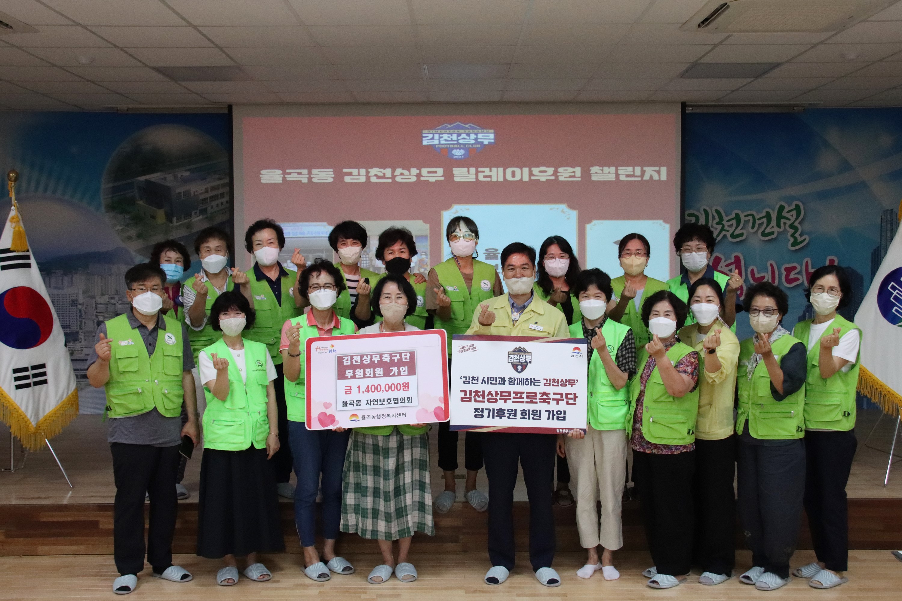 김천시 율곡동 자연보호협의회가 김천상무 후원회원 가입으로 ‘율곡동 김천상무 릴레이후원 챌린지’에 동참했다.