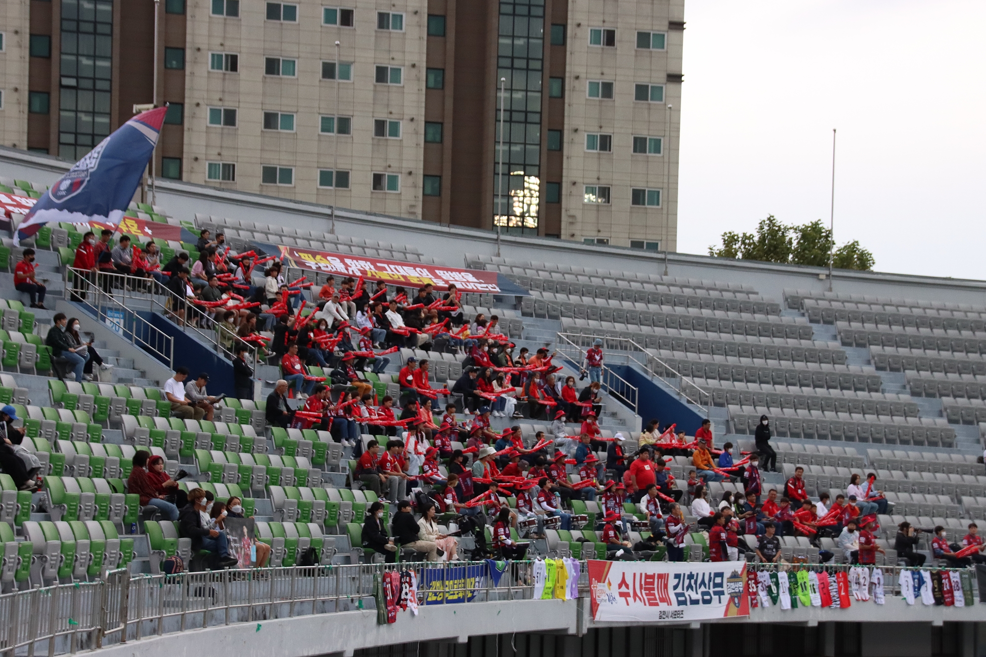 지난 2일 수원FC전과 파이널라운드 첫 원정경기에서 김천은 팬 200여 명과 함께 열띤 응원전을 벌였다. 팬들의 응원에 힘입어 후반 막바지 김경민이 극장 동점골을 넣으며 값진 승점 1점을 챙겼다. 득점 직후 김경민은 원정석으로 달려가 팬과 함께 기쁨을 만끽하기도 했다. 11위에 위치한 김천과 9위를 기록 중인 대구는 물러설 수 없는 한 판 승부를 벌인다. 한 자리 수 순위로 도약하기 위해 김천은 반드시 대구를 끌어내려야 한다.