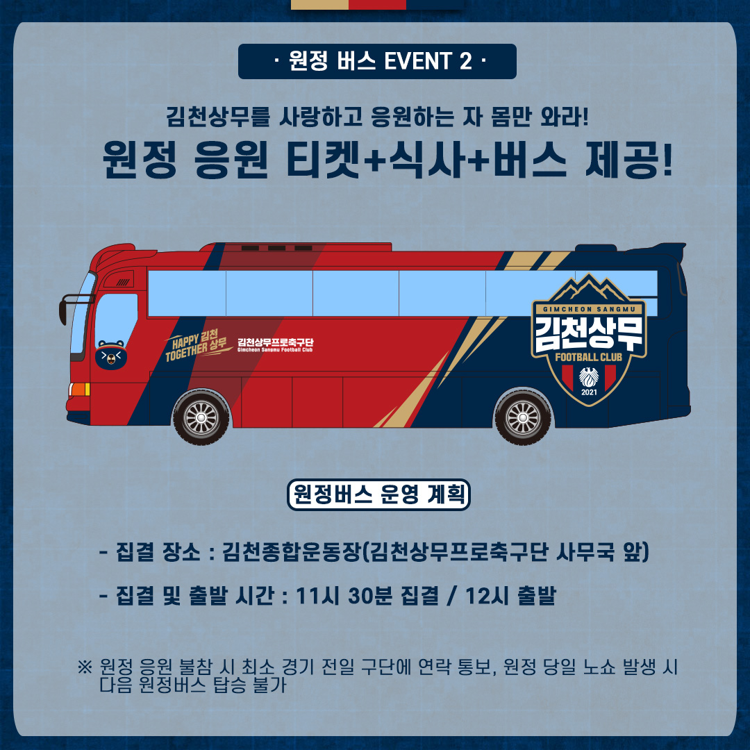 한편, 원정버스 관련 문의사항은 김천상무 마케팅팀(070-4105-4050) 유선문의를 통해 가능하다.