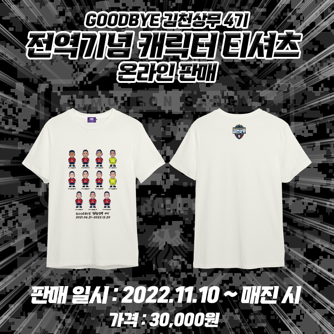 김천상무프로축구단이 4기 전역기념 티셔츠 온라인 판매를 시작한다.
