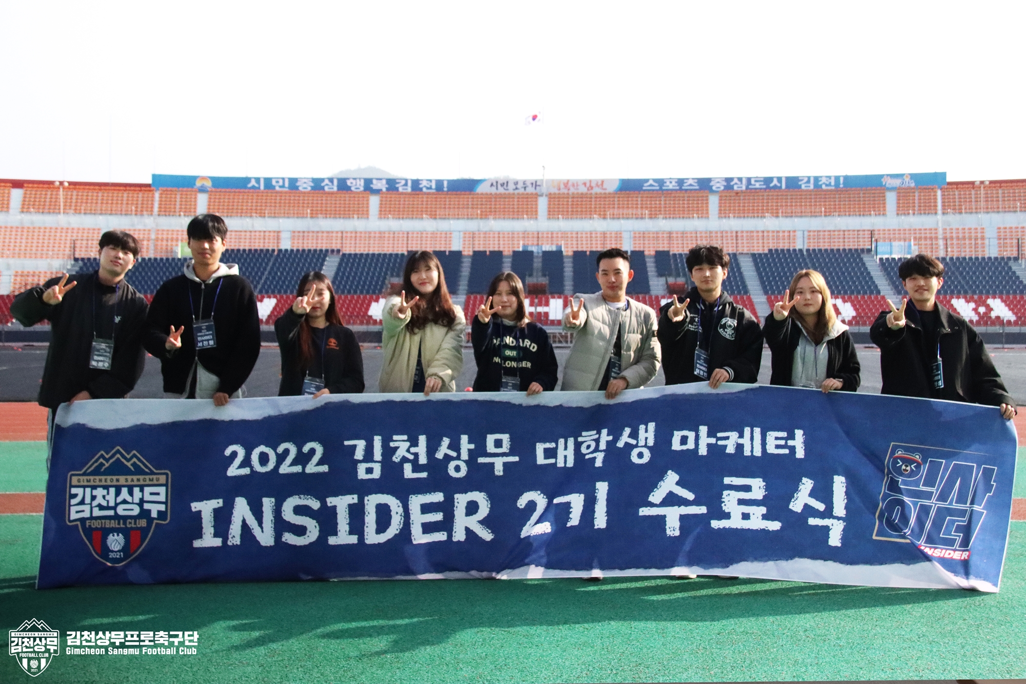 콘텐츠팀 유찬성 학생은 “인사이더 2기는 ‘경험’이었다. 프로 홈, 원정 경기, 유소년 대회 등 다양한 경험을 했다. 무엇보다 김천에서만 할 수 있는 국군체육부대 방문이라는 특별한 경험을 통해 많은 것을 배웠다. 이 경험들을 통해 진로 뿐 아니라 앞으로의 삶을 살아가는 데에도 큰 도움이 될 것 같다”고 소감을 밝혔다.