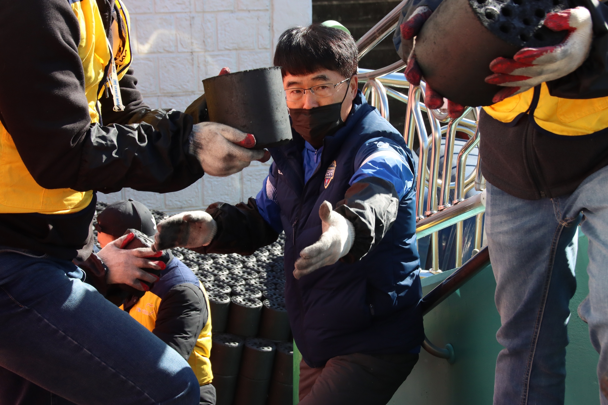 김천상무프로축구단이 2일 오전 김천시 자산동 일대에서 ‘TS & 김천상무 합동 사랑의 연탄 나눔’ 사회공헌활동을 진행했다. 이날 행사에는 TS 권용복 이사장 및 직원, 김천상무 이흥실 단장 및 직원들이 참석했다.