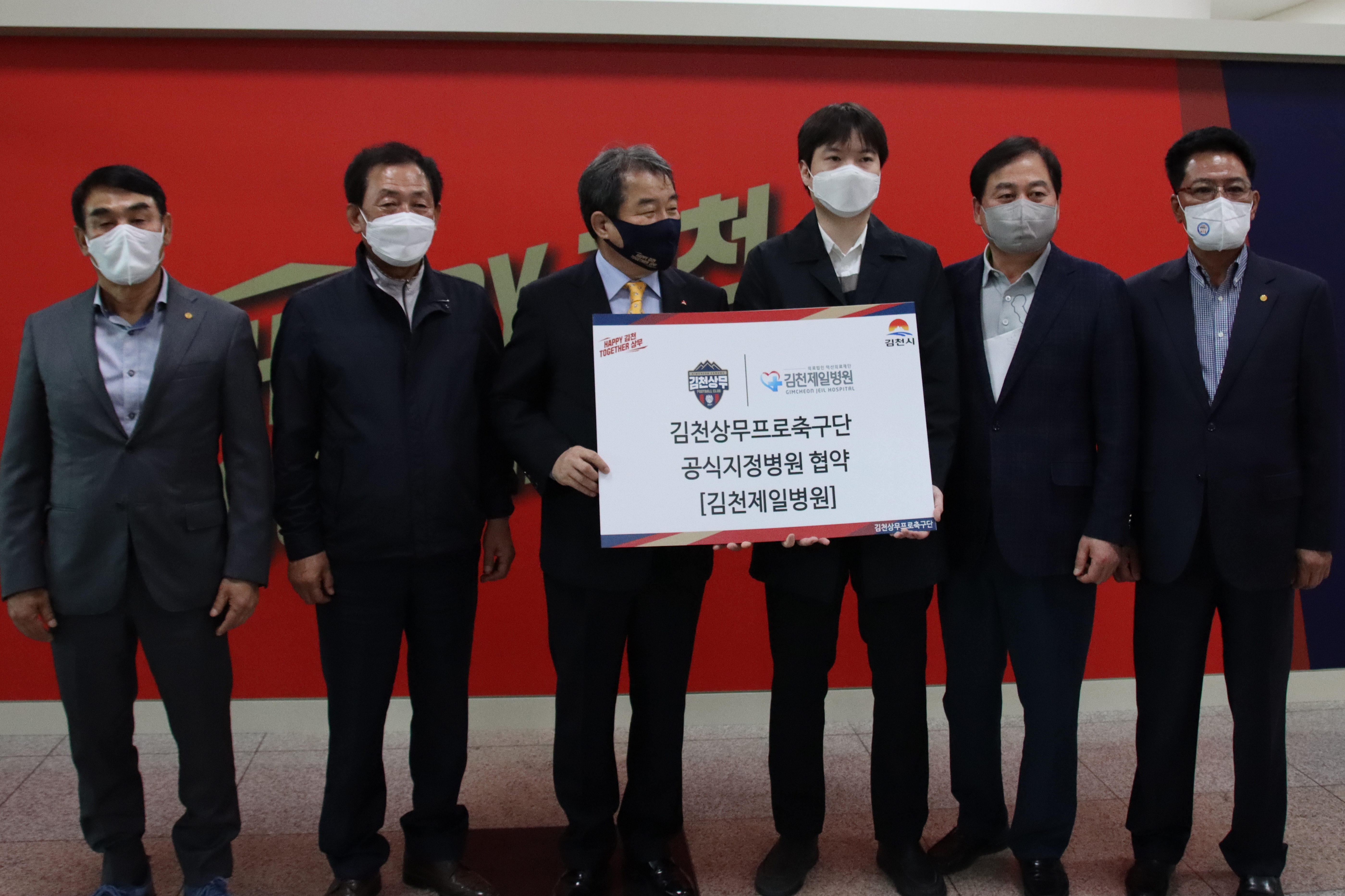 구단주 김충섭 김천시장은 “김천시 내 유일무이한 종합병원인 김천제일병원과 우리 김천상무프로축구단이 공식지정병원 협약을 맺게 돼 영광이다. 한 시즌 동안 선수들의 컨디션을 위해 힘써주셨으면 좋겠다”고 말했다.