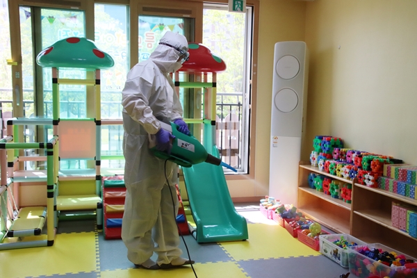 지역사회 내 코로나19 확산 방지를 위해 김천상무는 김천시 내 어린이집 중 희망 어린이집들을 대상으로 어린이집 안팎 소독을 진행하고 원생에게 KF94 소형 마스크를 제공했다.