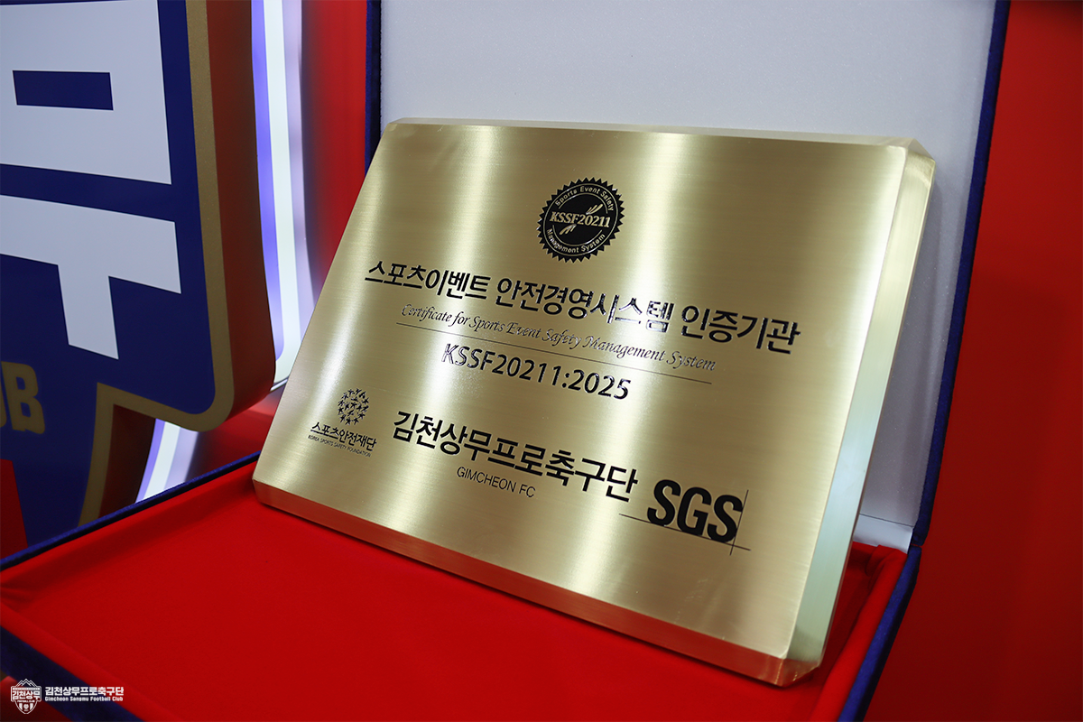 김천상무가 스포츠안전재단의 스포츠이벤트 안전경영시스템 인증을 획득했다.