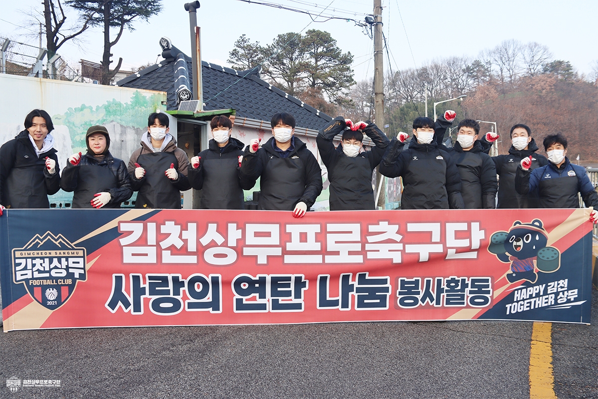 김천상무는 관내 에너지 취약 계층의 따듯한 겨울에 보탬이 되고자 2022년부터 ‘사랑의 연탄 나눔 행사’를 이어오고 있다. 특별히 올해는 사무국 임직원과 함께 팬이 동참하여 의미를 더했다.