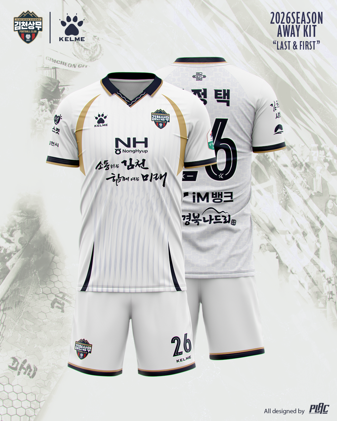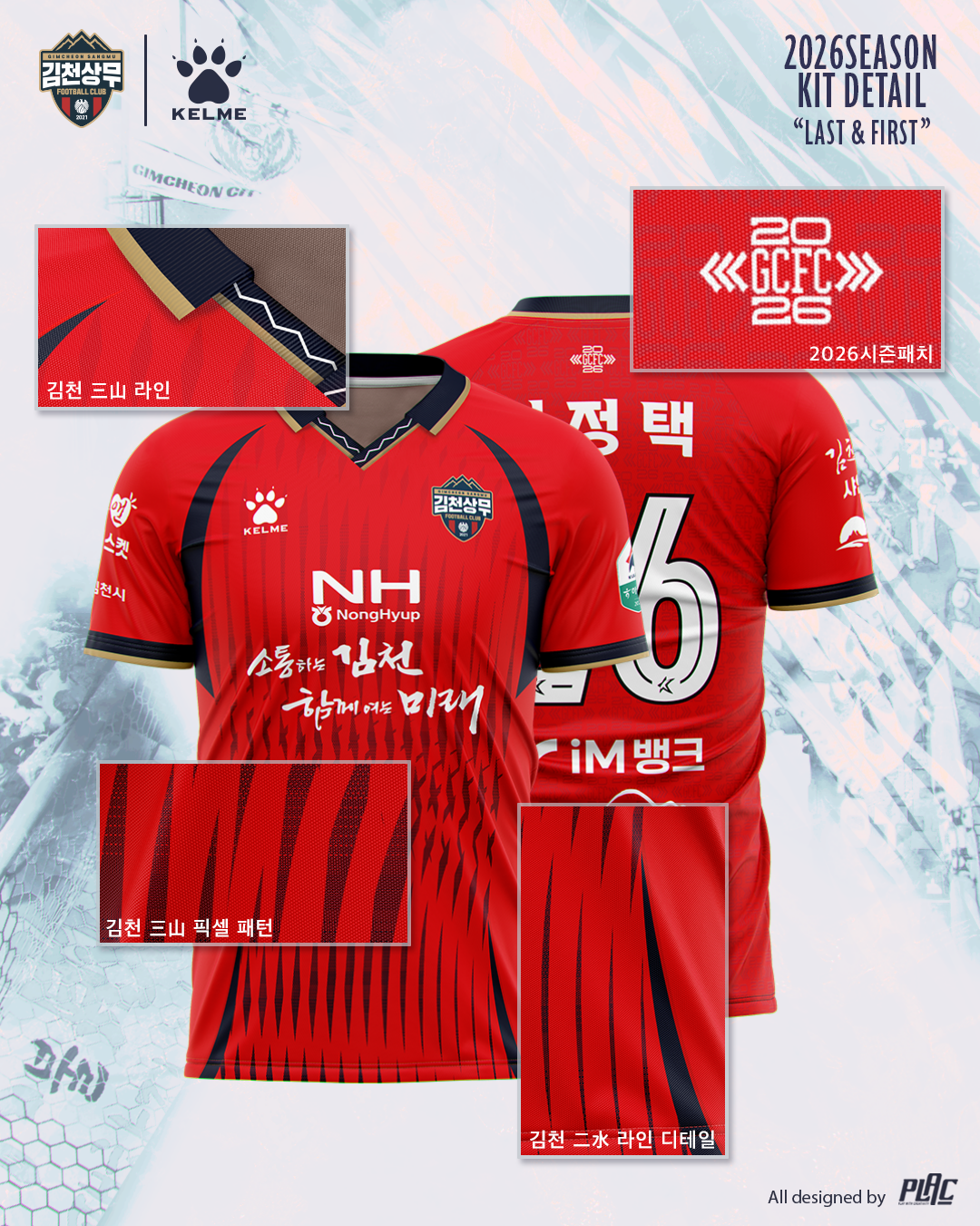 김천상무프로축구단(대표이사 이재하)이 1월 21일, 2026시즌 유니폼 ‘LAST & FIRST’를 공개했다. 이번 유니폼은 김천과 상무가 함께하는 마지막 시즌을 상징함과 동시에, 김천상무로서 쌓아온 시간을 뿌리 삼아 시민구단으로 도약하겠다는 의미를 담고 있다. 새 유니폼은 필드 홈·원정, 골키퍼 홈·원정까지 총 4종으로 구성됐으며, 각 유니폼에는 패턴과 디테일, 색상으로 고유한 상징과 메시지를 담았다.