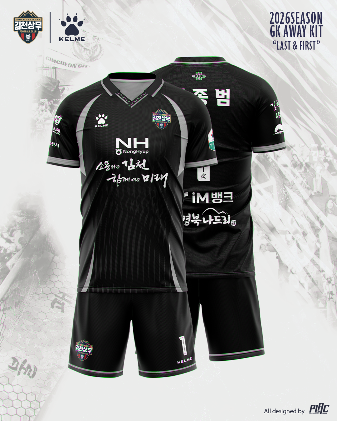 골키퍼 홈 유니폼은 김천의 특산품인 ‘샤인머스캣’을 연상시키는 색상을 적용해 지역과 구단의 연결성을 표현했다. 마지막으로 골키퍼 원정 유니폼에는 모든 색을 품는 검정색을 바탕으로 사용해, 상무와 함께한 시간의 유산과 시민구단 전환을 향한 김천 시민의 염원이 하나로 모여 새로운 시대를 준비한다는 의미를 담았다.