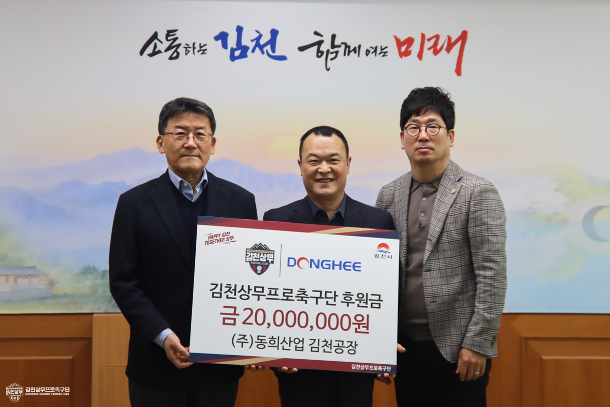동희산업은 김천시 어모면 산업단지에 위치한 김천공장을 인연으로 지난 2022년부터 김천상무 후원을 시작했다. 이어 올해까지 5년 연속 후원을 이어가며 지역 스포츠 발전과 구단 운영에 힘을 보태고 있다.