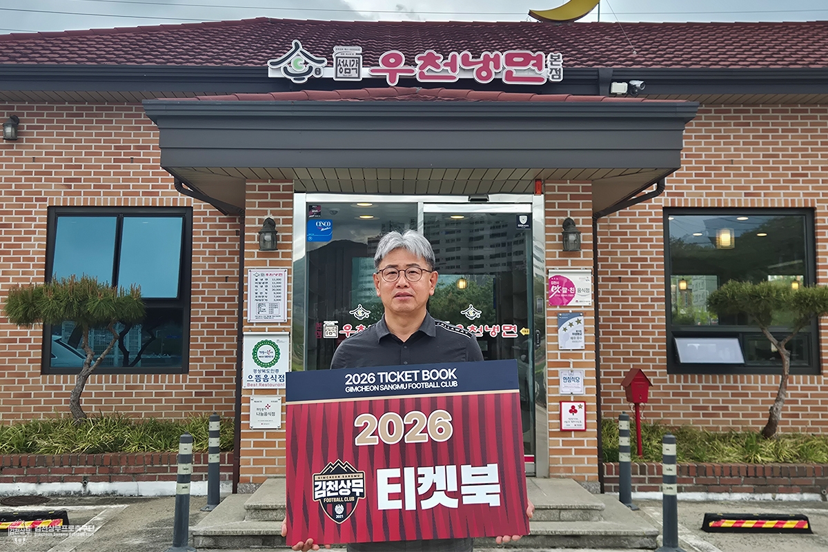 먼저 이만수 우천냉면 대표는 ‘김천시 서포터즈’ 회장을 역임한 데 이어, 현재 김천상무 대의원으로 활동하며 지역 축구 발전과 구단 응원 문화 조성에 꾸준한 관심을 보여왔다. 평소 축구에 대한 남다른 애정을 지닌 이 대표는 우천냉면 매장 내부에도 김천상무 MD를 진열할 만큼 구단을 향한 애정을 실천으로 이어오고 있다.
