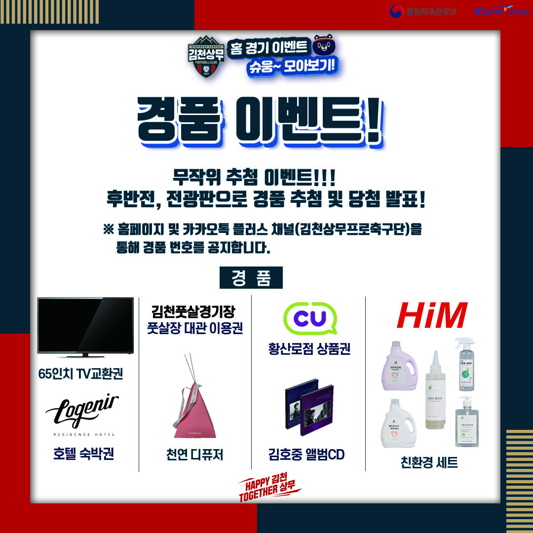 경품 추첨 이후 전광판에 경품 당첨자를 표출하며 김천상무 홈페이지, 카카오톡 플러스 채널을 통해 당첨자 번호를 공지할 예정이다.