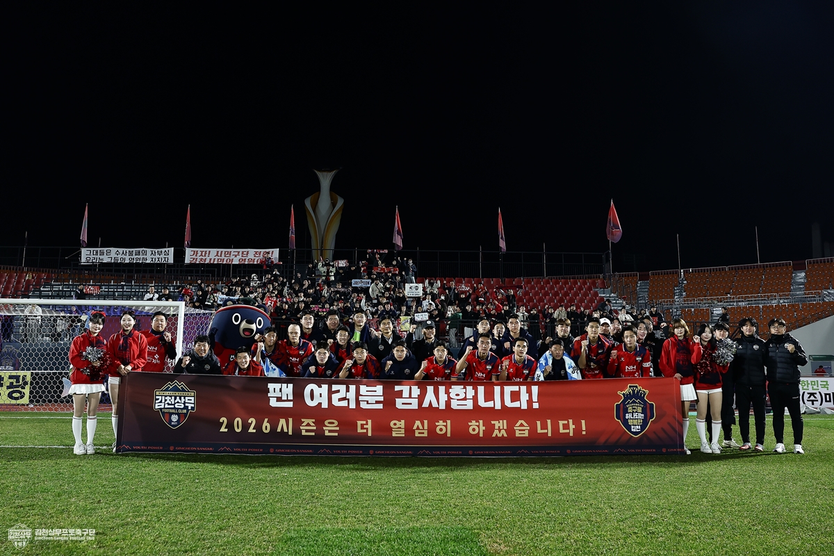 한편, 김천상무는 시즌이 끝난 뒤에도 아침 인사와 퇴근길 캠페인 등 김천 시민을 응원하고 더욱 깊숙이 다가가기 위한 활동을 지속한다.