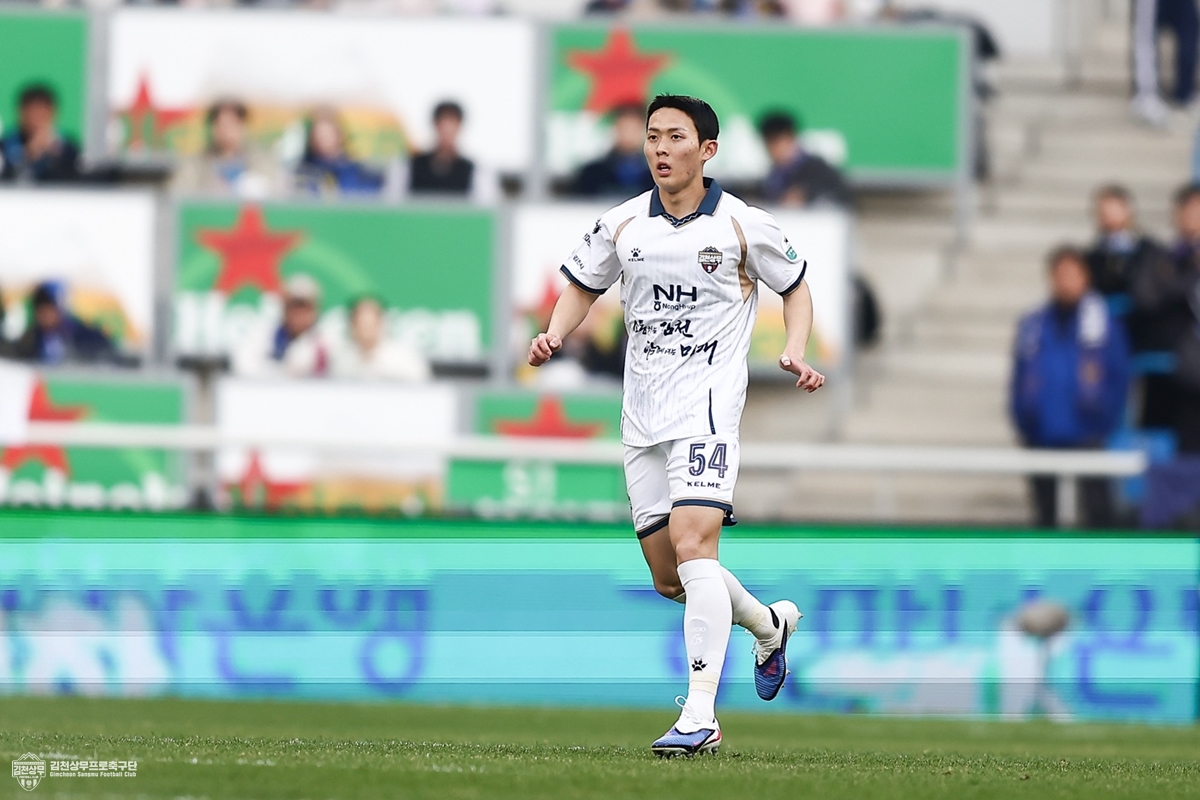 김천상무는 5경기 연속 무승부를 끊어내기 위해 김인균의 선발 기용과 12기 정재민, 윤재석 등을 명단에 포함하는 변화를 주었다. 그러나 경기 초반 아쉬운 실수로 선제 실점을 허용했다. 전반 9분, 후방 빌드업이 인천의 압박에 차단당하며 실점까지 이어졌다.