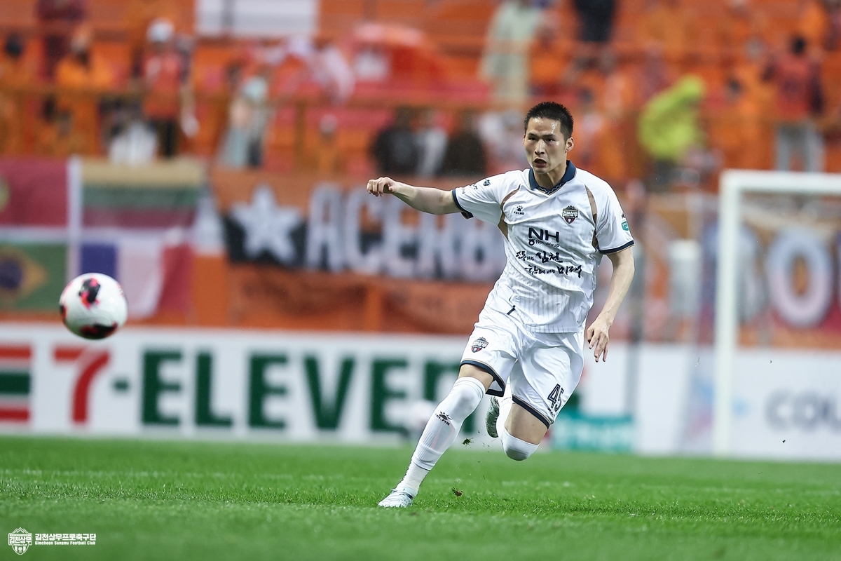 지난 강원전에서는 김천상무 12기 변준수가 첫 선발 출전과 함께 풀타임을 소화하며 존재감을 드러냈다. 비록 팀은 아쉬운 결과를 받아들여야했지만, 변준수 개인의 경기력만 놓고 보면 충분한 기대를 남긴 한 판이었다. 특히 중장거리 패스를 활용해 풀백의 침투 시점에 맞춰 좌우로 전개하는 장면은 인상적이었다. 후방에서 단순히 버티는 역할에 그치지 않고 공격 전개의 출발점으로 기능할 수 있다는 가능성을 보여준 셈이다.