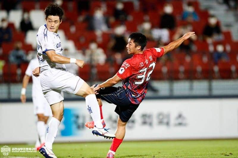 김천상무프로축구단이 지난 13일 김천종합운동장에서 열린 '하나원큐 K리그2 2021' 29R 충남아산프로축구단과 경기에서 2대 0으로 승리했다. 고승범은 후반 12분 김천의 결승골을 기록하며 승리의 일등공신이 됐다.