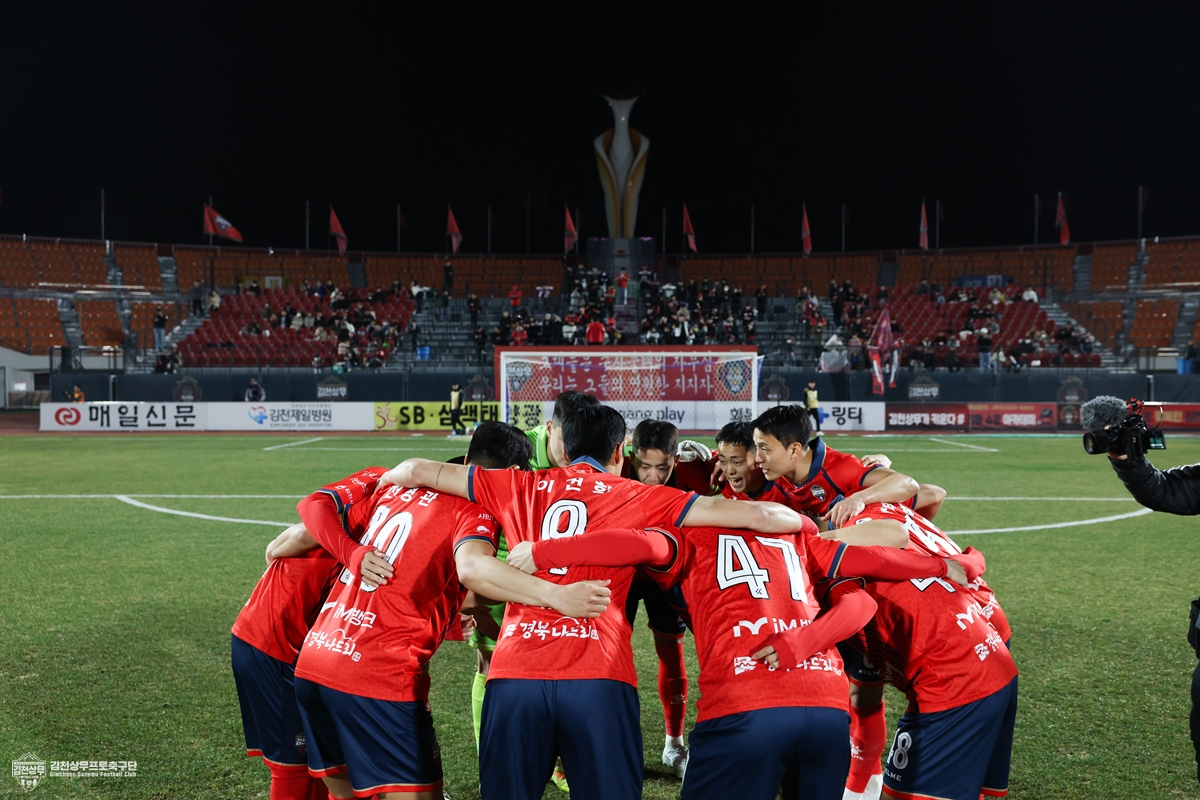 김천상무프로축구단(대표이사 이재하)이 4월 12일 일요일 16시 30분, 김천종합운동장에서 FC안양(이하 안양)과 ‘하나은행 K리그1 2026’ 7R 홈경기를 치른다. 김천상무는 약 한 달 만에 치르는 홈경기에서 연패에 빠지지 않고 시즌 첫 승을 올린다는 각오다.